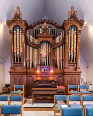Our organ, the E & G.G Hook Opus 476, is the oldest operating pipe organ in the State of Colorado. It was built in Salem, Mass. by Elias and George Greenleaf Hook, sons of a local cabinet maker. Our Hook Organ is in a beautiful, free-standing walnut case with Victorian-stenciled facade pipes. Originally purchased by the Methodist Church in Lawrence in 1869, it remained there until 2009, when it was acquired by St. John's Episcopal Cathedral in Denver. It was transported to Denver, restored, and served the Cathedral while their pipe organ was being refurbished.